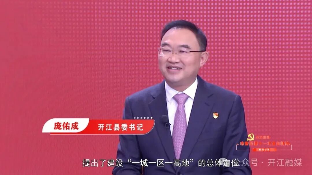 主持人 姜美丞:通过刚才的短片,我们了解到开江将全面落实市委全会部署,加快建设“一城一区一高地”,那么庞书记,能否请您具体介绍一下呢?