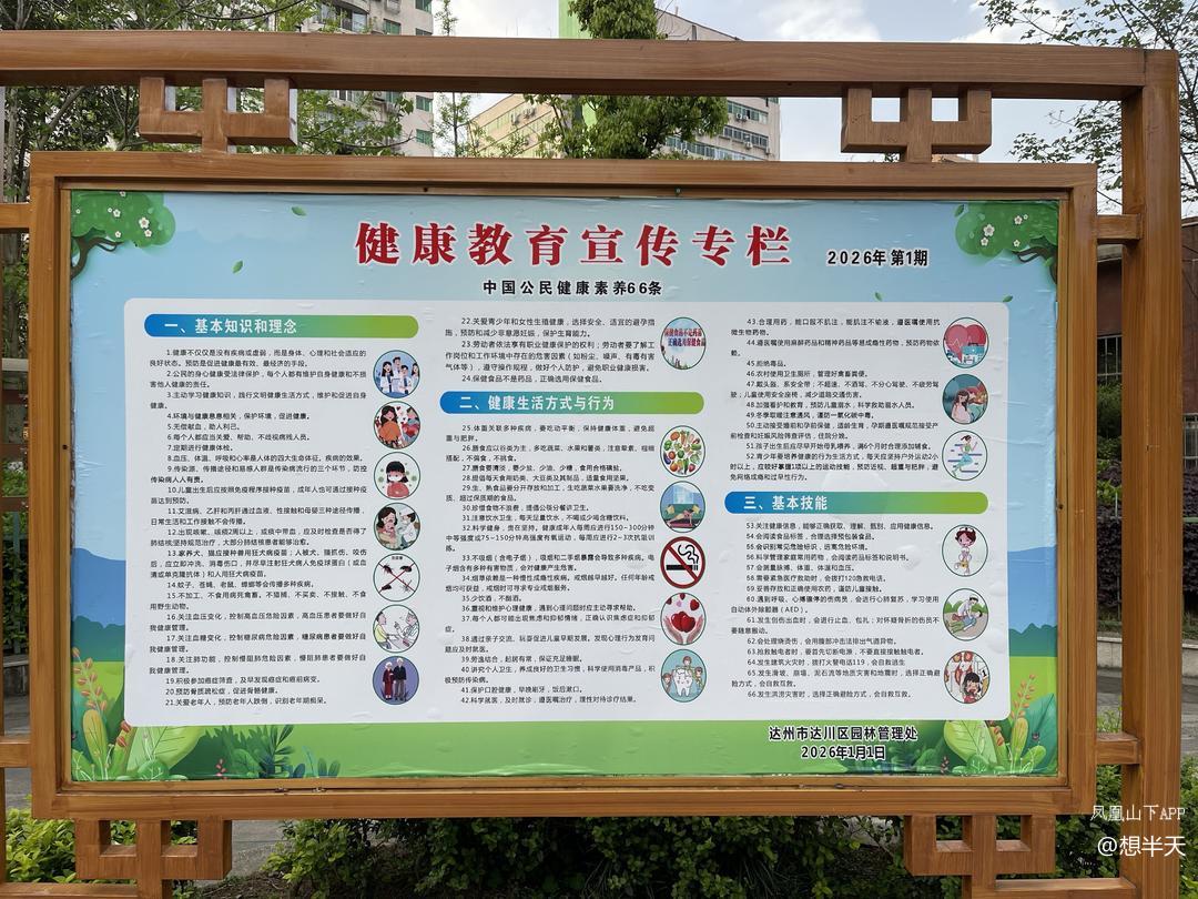 立在映山红广场的健康教育宣传专栏,2026年第一期,宣传中国公民健康素养66条,很好很全面地普及了健康知识。只是第八条的最后5个字,我真的没有看懂,是不是多余了的没有删掉?
