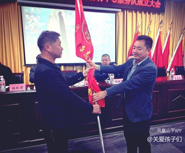 达州市关爱青少年志愿服务团副团长王海键宣读了管村中心服务队成立的文件,明确了队长、副队长的职务。随后镇人大主席姚小松为副队长蒲善兵授旗,达州市关爱困境儿童志愿服务团常务副团长赵新春为副队长王覃授牌。