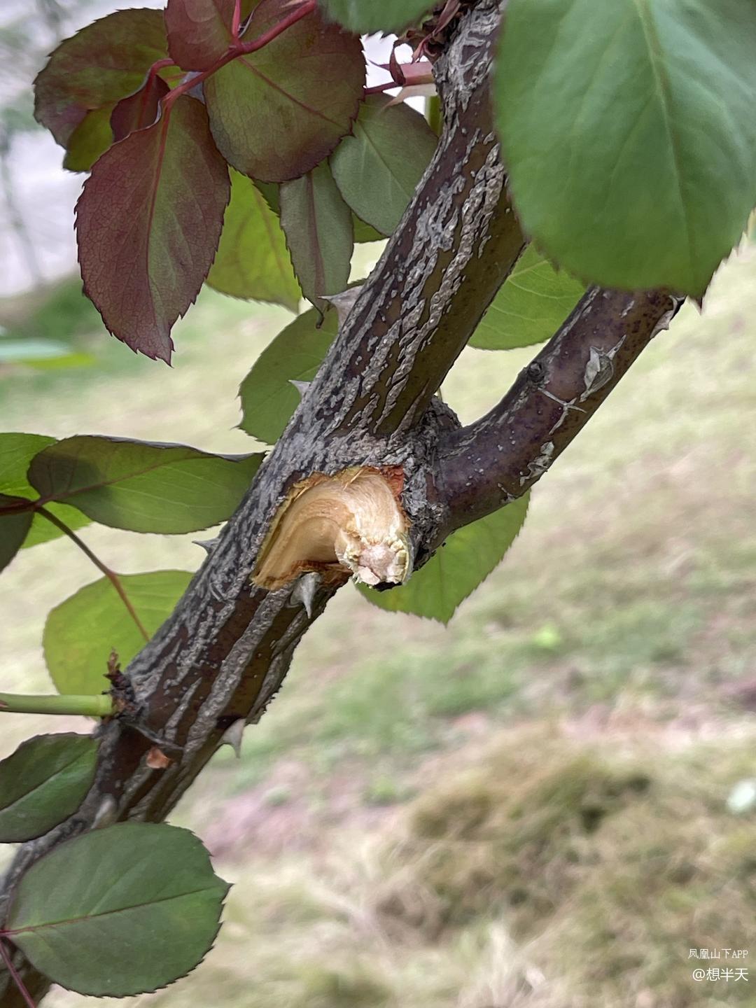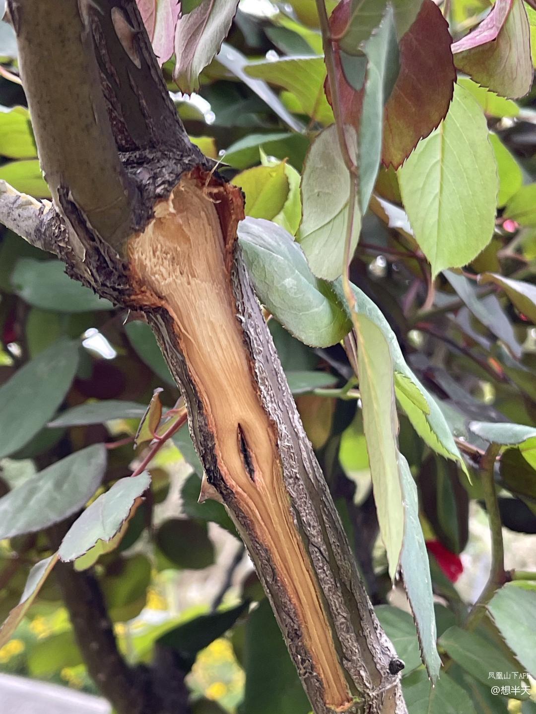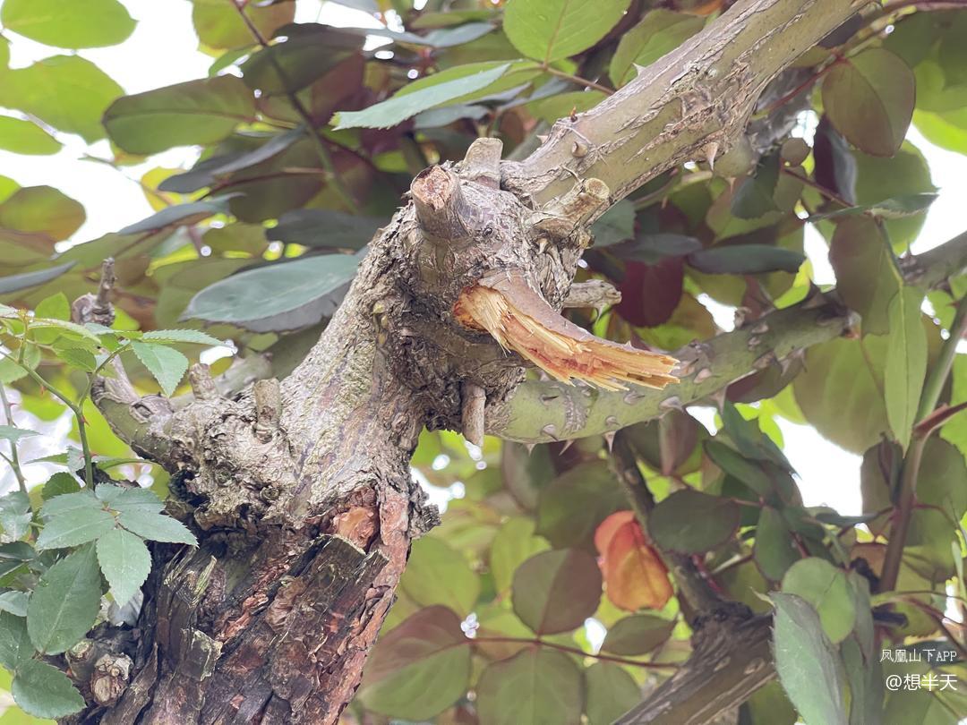 这就是她们扳走枝条留下的伤口,这三个女人一人扳了一枝,看见我在远处拍照后就分头灰溜溜的跑了,她们不是不知道她们的行为是破坏公物,也知道是不文明行为,她们是明知故犯!